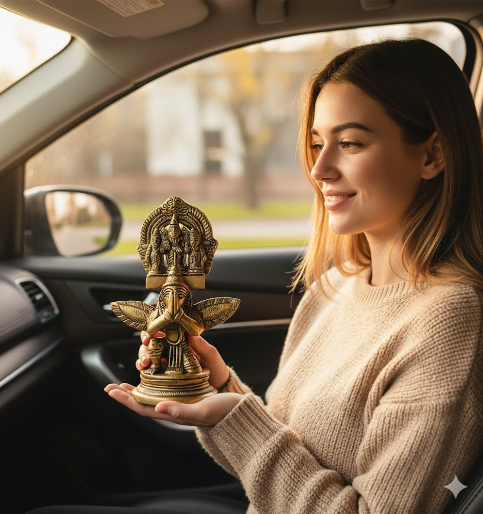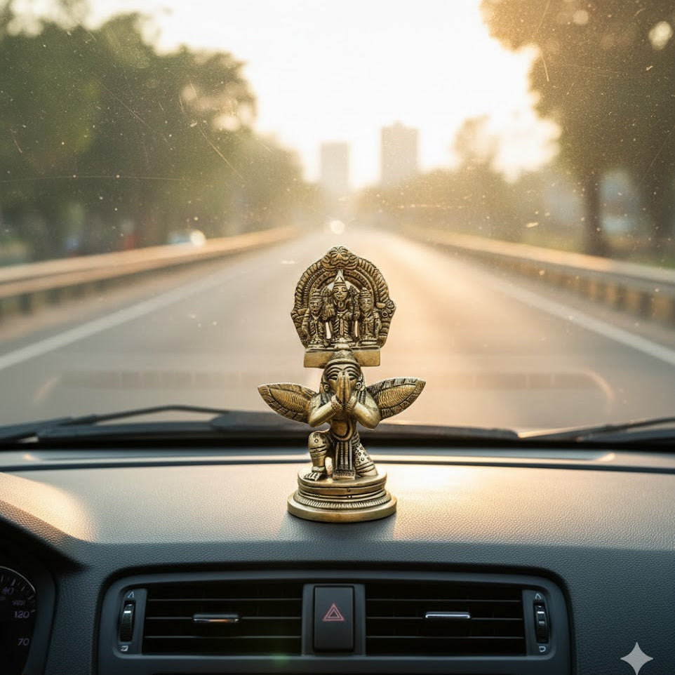 Depicts Lord Venkateshwara (Balaji) on Garuda for divine protection and blessings