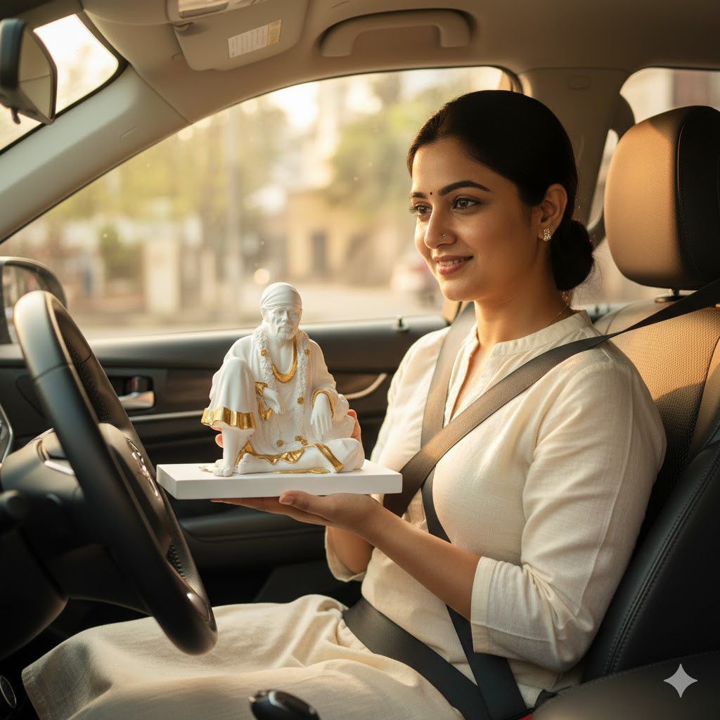 Bring elegance and divine blessings to your space with this Luxurious White & Gold Sitting Sai Baba Idol. πβ¨