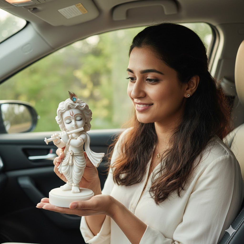 The elegant white marble finish adds a touch of grace, peace, and spiritual purity, making it perfect for your pooja room, living space, office desk, or gifting on auspicious occasions. Placing this idol at home is believed to bring joy, prosperity, and protection from negative energies.