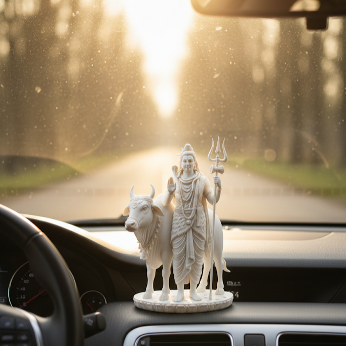Bring home the powerful blessings of Mahadev with this beautifully crafted White Marble Lord Shiv with Nandi Idol, a sacred symbol of strength, transformation, and spiritual awakening. Depicting Lord Shiva in his divine form alongside his devoted companion Nandi, this idol radiates purity, positivity, and cosmic energy.